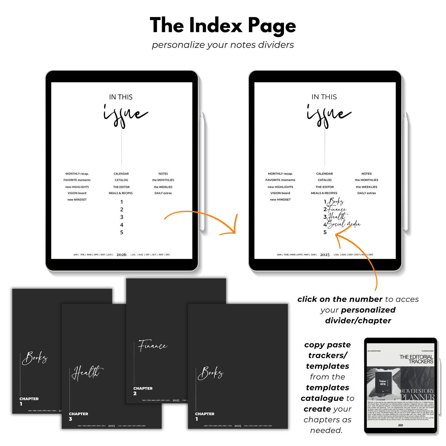 โ๏ธ Customizable Chapter Dividers: Personalize with over 70 extra templates and trackers to make this planner your own.