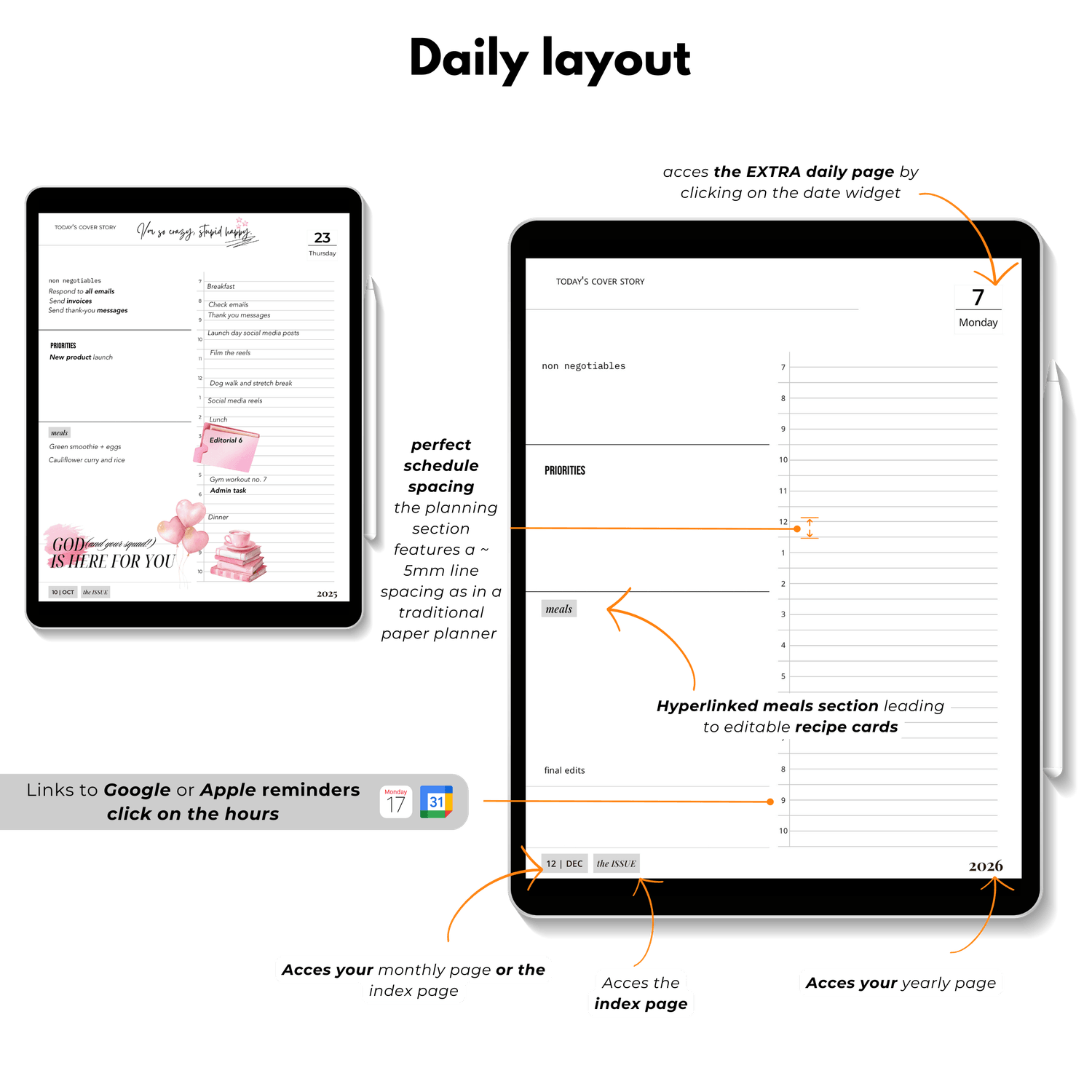 โ๏ธ Click the date widget to switch to your extra daily page for journaling, gratitude, and notes