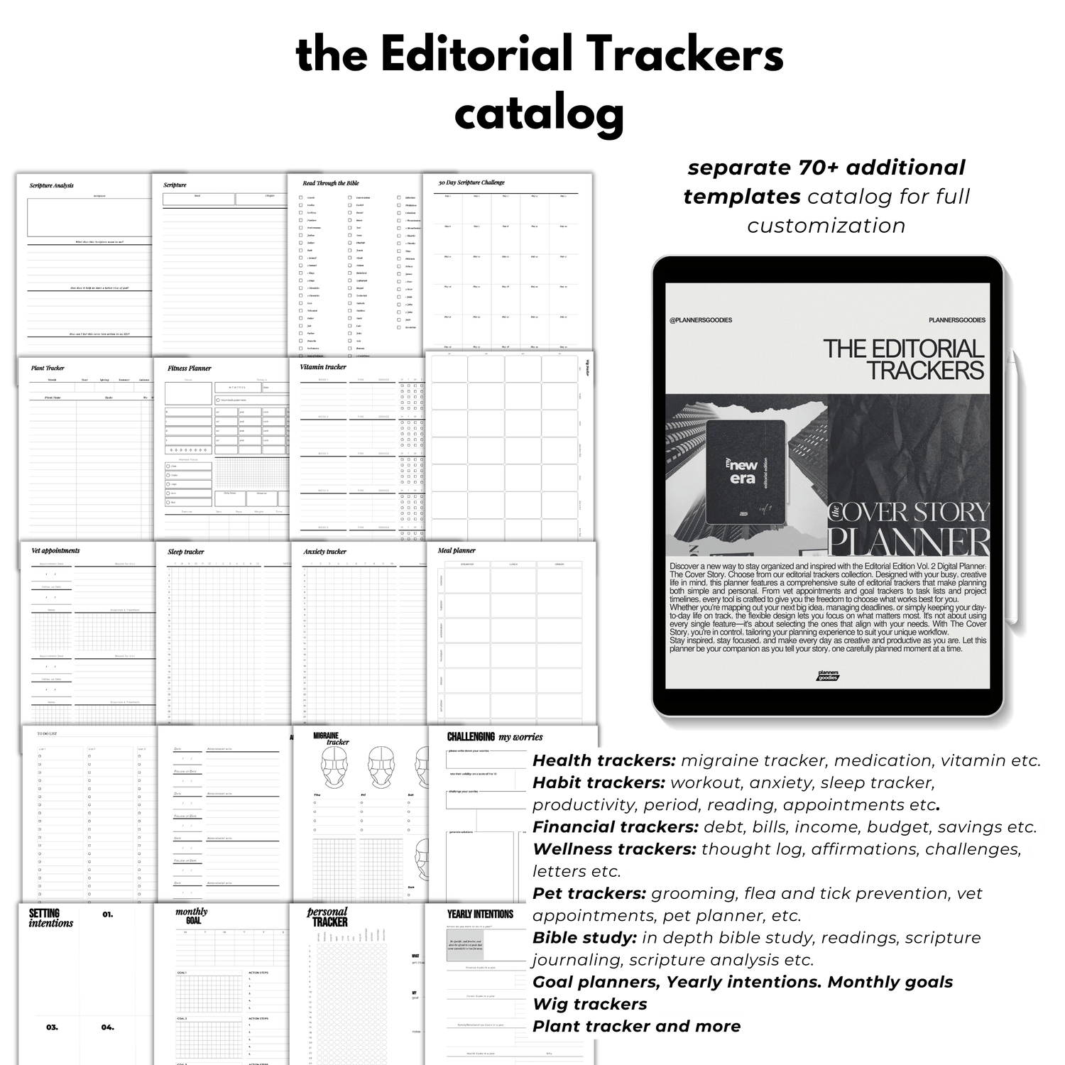 โข Habit trackers: personal trackers, migraine trackers, period trackers, anxiety trackers, reading trackers, productivity trackers, vitamin trackers, sleep trackers, and more