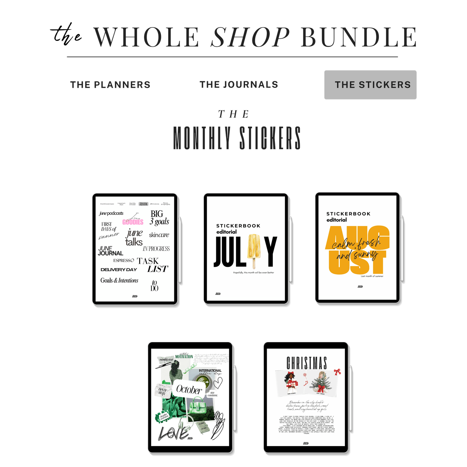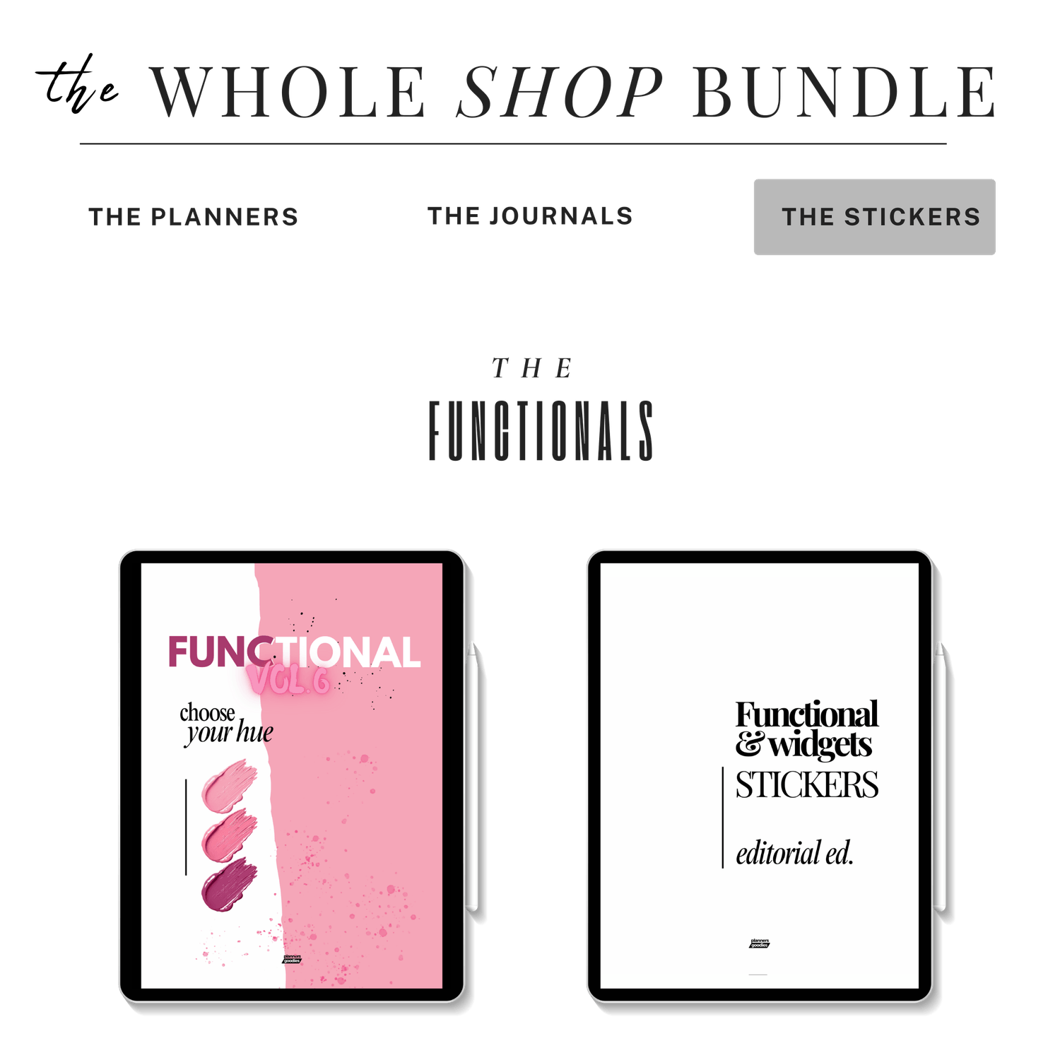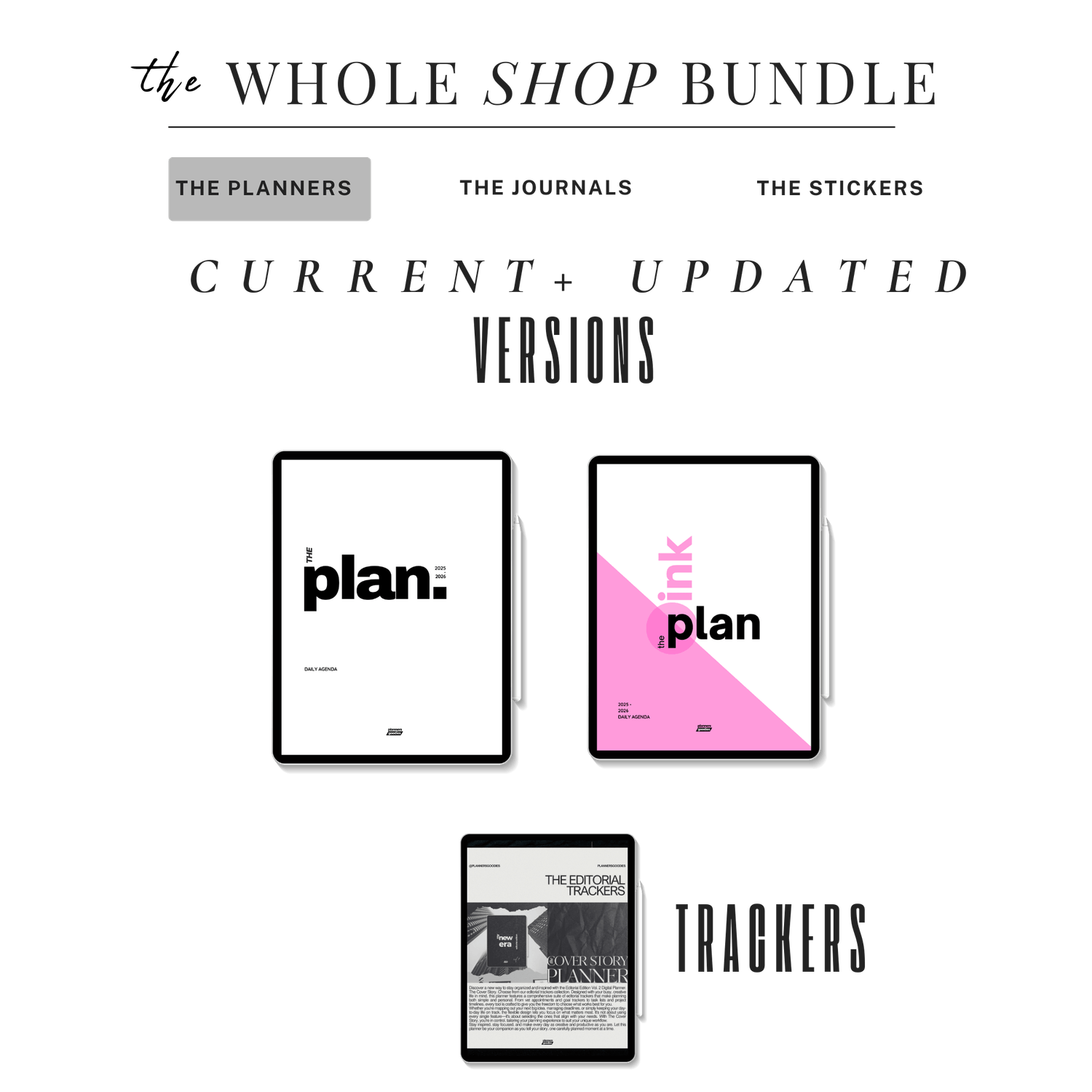 Unlock the ultimate digital organization system with the Whole Shop Bundle from PlannersGoodies โ your all-in-one solution for daily, weekly, and monthly planning. This mega bundle includes: