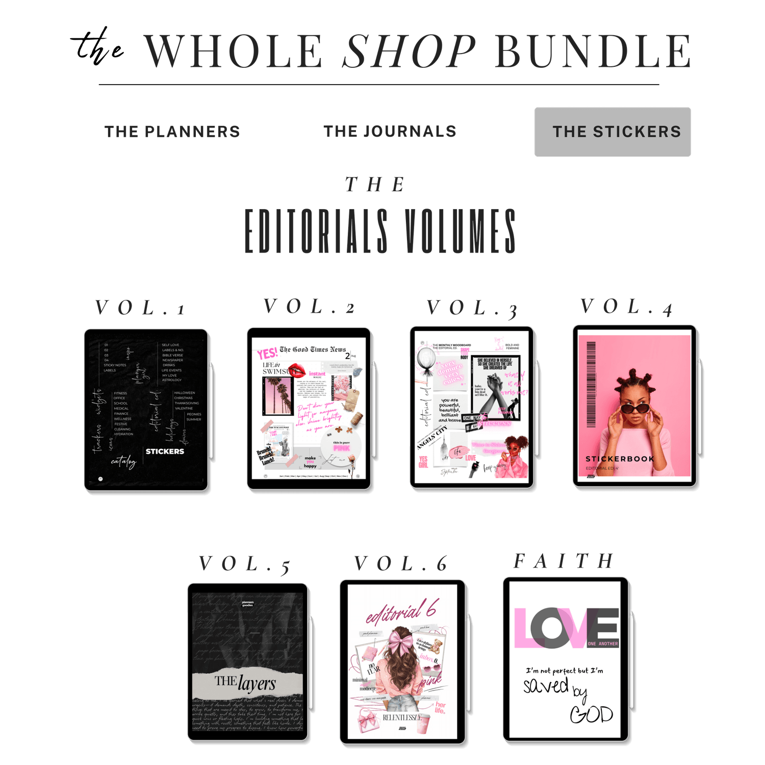 โญโญโญโญโญ Let me start by saying this is a lot for what you pay. Secondly, this is a bundle of amazing digital products. I love the editorial style planners so much, and this satisfies my needs. I had an issue, the shop owner was very gracious, great customer services and I will the is now a shop I want to follow and continue to support.