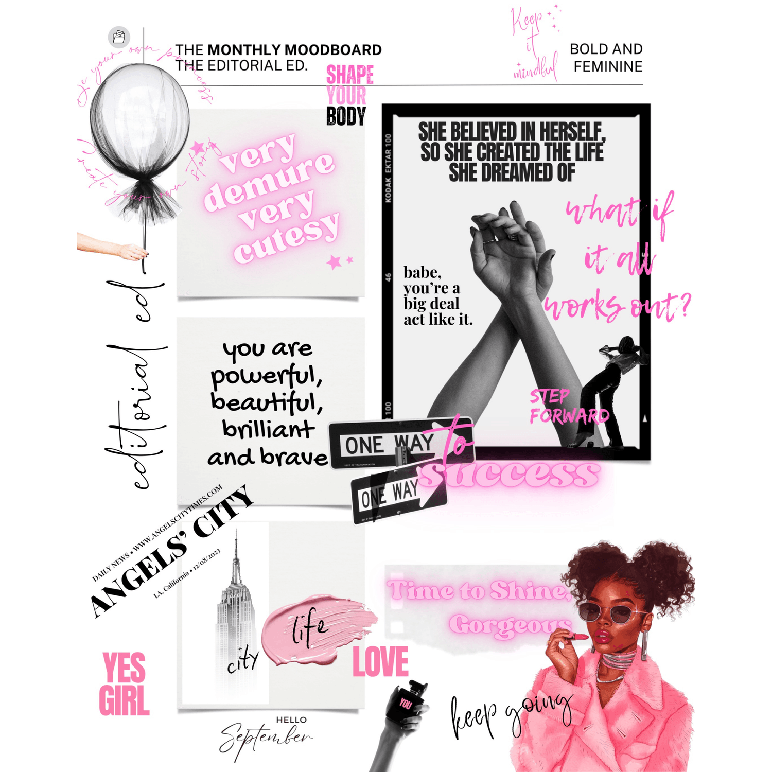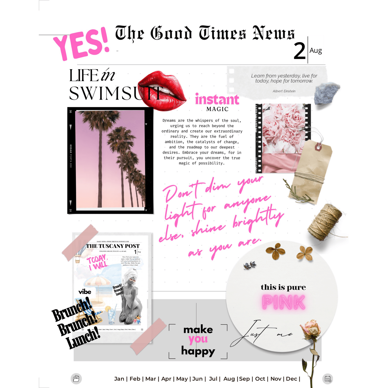 and is perfect for magical dreamers seeking inspiration and motivation. Ideal for vision boards, journaling, and planning, it includes quotes, newspaper-inspired collages, banners, overlays, and more. Great for Goodnotes, Android, and planner inserts!