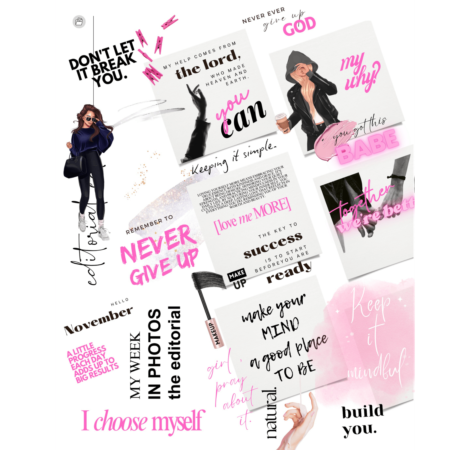 and is perfect for magical dreamers seeking inspiration and motivation. Ideal for vision boards, journaling, and planning, it includes quotes, newspaper-inspired collages, banners, overlays, and more. Great for Goodnotes, Android, physical stickers, and planner inserts!