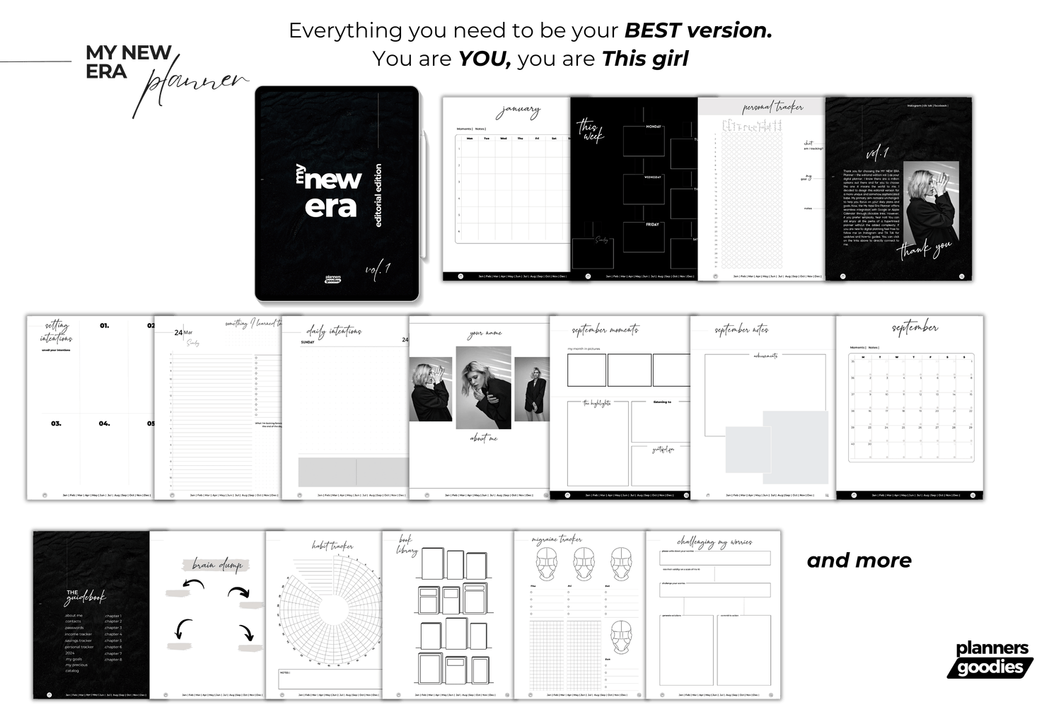 โข Goals chapter: yearly intentions, yearly goals, goal planner, monthly goal planner, goals