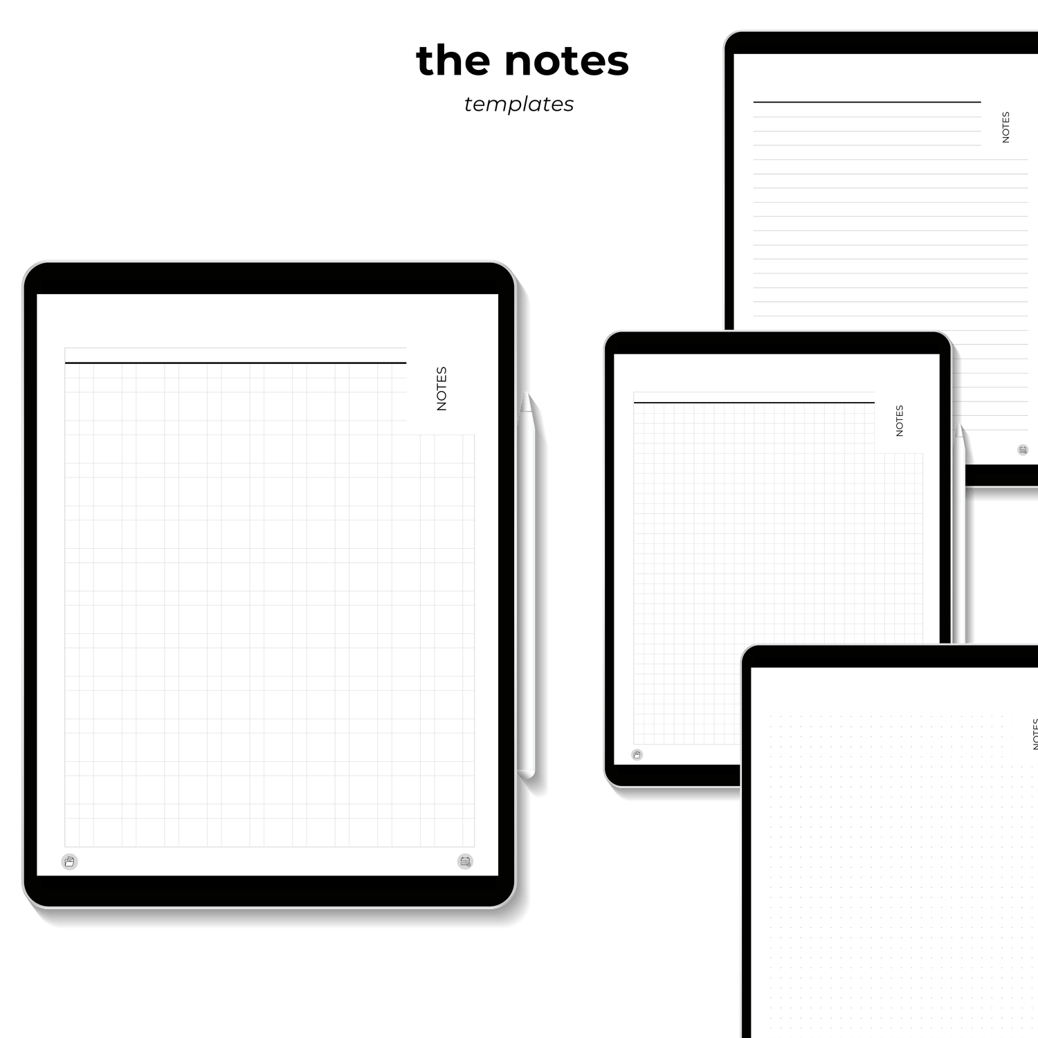 • 4 note templates: lined, grid, dots, and graph